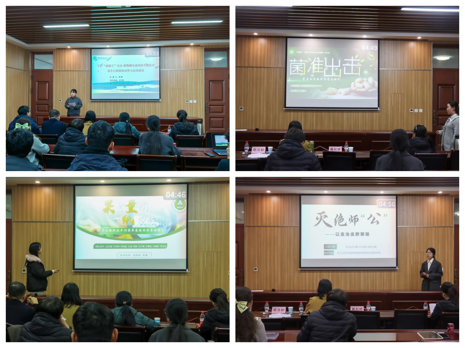 比赛现场,各参赛团队依次登台,围绕项目核心创新点、实践过程与社会价值展开汇报。评委老师们结合植保学科特色与国家粮食安全需求,从项目科学性、落地可行性及推广价值等维度逐一提问,既精准指出优化方向,也为团队后续打磨作品提供了专业指导,充分展现了学院以赛促学、以赛促创的育人理念,为培养更多卓越植保人才注入了鲜活动。