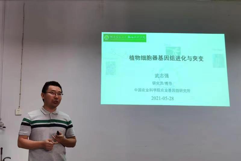 报告会上武志强研究员首先介绍植物细胞器(叶绿体和线粒体)是植物的能量工厂,同时细胞器基因组与植物的雄性不育、作物产量等具有密切相关性。其次,武志强研究员介绍了植物线粒体体多染色体结构,植物的多染色体结构在蝇子草属中有频繁的丢失和获得,且被子植物多个类群中线粒体基因组进化速率表现异常。最后,武志强研究员介绍利用Duplex sequencing技术检测拟南芥中7个与细胞器DNA复制、重组、修复相关基因的突变体植株中处于异质体状态的超低频突变,发现仅msh1突变体出现叶绿体和线粒体等细胞器基因组突变大量增多的现象。报告会后,武志强研究员与参会师生就报告内容展开了深入讨论,就植物细胞器的前沿研究及其潜在应用进行了广泛交流,拓展了师生在该领域的视野,加深了师生对植物细胞器在生命活动中重要性的认知。